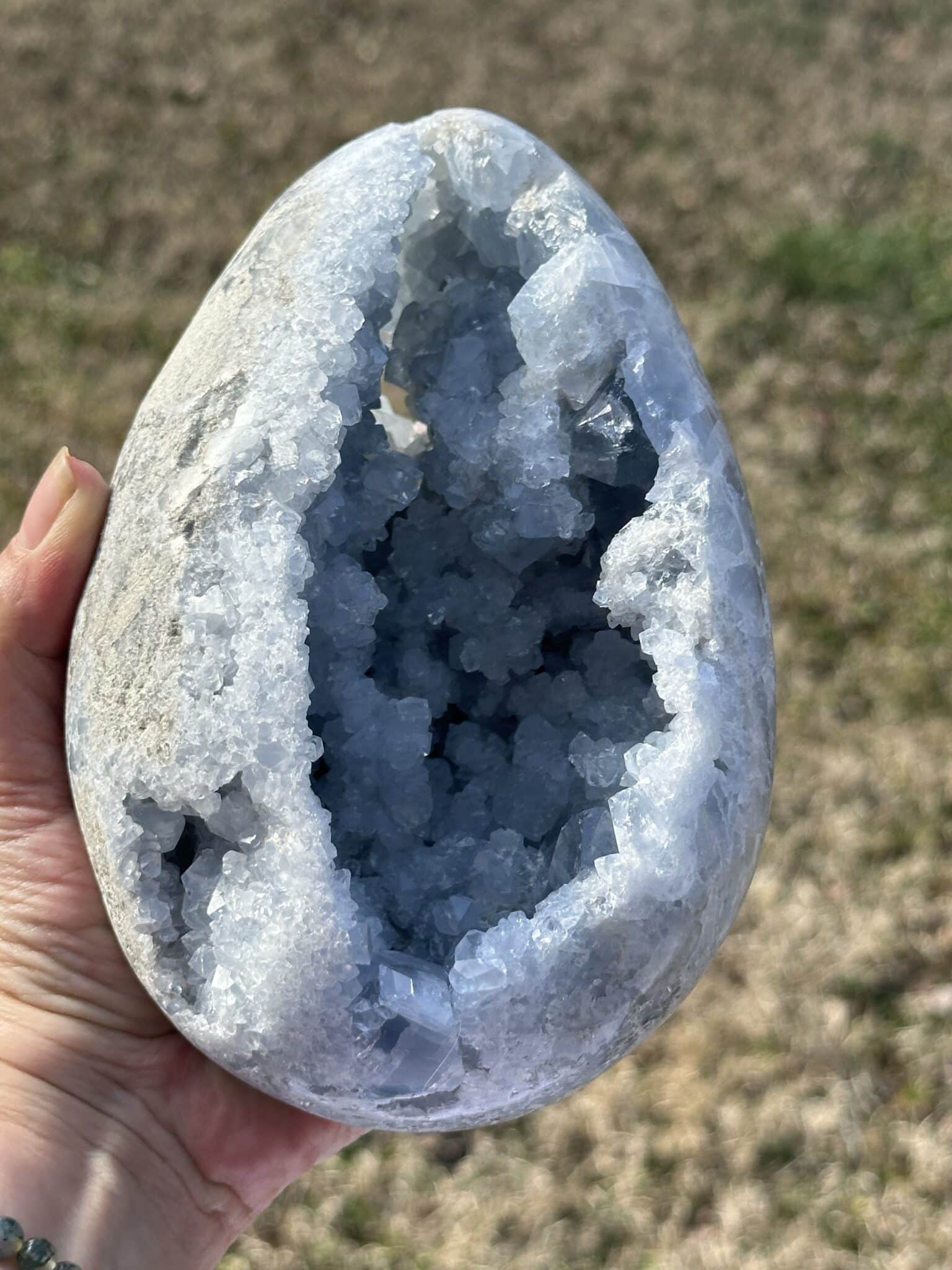 Beautiful egg has lovely crystal points and a soothing shape
