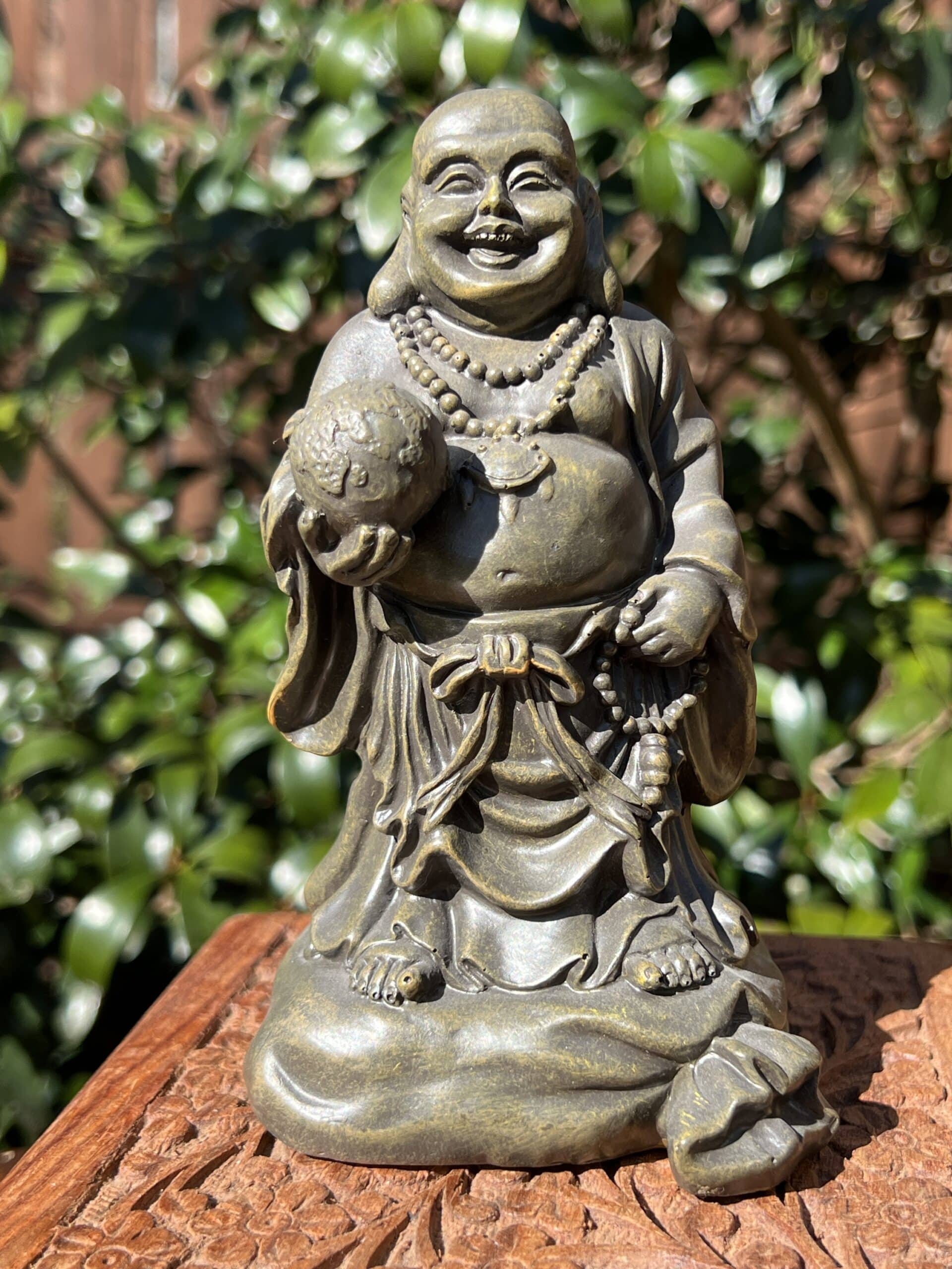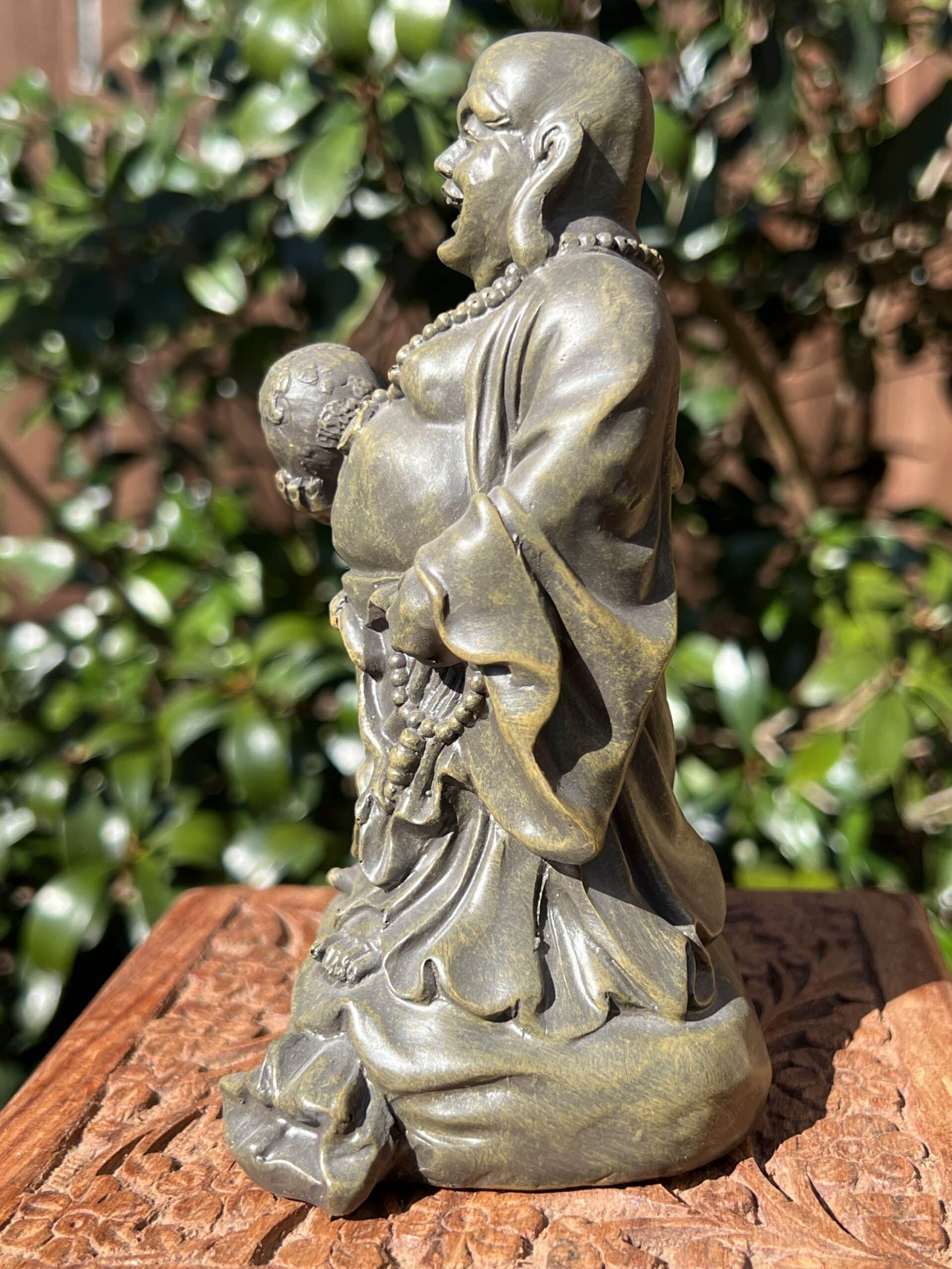 Laughing Buddha statue measures 5 3/4 x 3 by 3 inches ? and weighs 13.3 ounces.